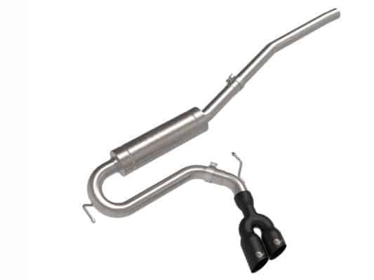 This cat-back exhaust system is constructed of 2-1/2 IN mandrel-bent 304 stainless steel tubing for maximum strength and durability. This system features a high-flow 304 stainless steel muffler, producing a deep sound. Finishing off this exhaust system is a 3-1/2 IN diameter black 304 stainless steel exhaust tip. The tip features a laser etched aFe POWER logo for a unique style. This system produces a deep sound unleashing all available horsepower and torque. Some cutting may be required, see instruction sheet for further information. Utilizing factory style hangers this system mounts directly to factory mounting locations for a hassle-free installation. State-of-the-art computer-aided design technology is utilized for precise vehicle fitment. 100% MIG-Welded for race-proven strength and durability.