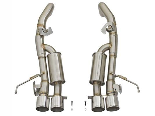Testing In testing, the axle-back exhaust system resulted in gains up to +7 horsepower and +10 lbs. x ft. of torque verified by our in-house dyno. Aggressive Sound: Dual free-flowing mufflers are used to absorb high pitch tones producing a powerful sound and unleashing all available horsepower and torque. Exhaust Valve: This axle-back exhaust system incorporates factory style NPP dual mode & AFM (active flow management) exhaust valves which use the factory exhaust valve motors (not included). The valves helps regulate, direct and control the flow of exhaust gases by opening, closing, or partially obstructing passageways depending on throttle position for maximum performance. Simple Installation: This MACH Force-Xp axle-back exhaust system uses factory mounting locations providing stability and a hassle-free installation. Quad 4″ Carbon Fiber Tips: Finishing off this system are quad light weight, 4″ diameter, pure carbon fiber tips. The tips come with CNC-Machined laser-etched inserts, which give an aggressive yet elegant sporty look. Leak-Free Seal: High quality band clamps are used for a complete 360 degree sealing surface. Brushed 304 SS Construction: The performance axle-back exhaust system is constructed of 3″ mandrel-bent, brushed 304 stainless steel tubing for maximum performance, corrosion resistance and strength eliminating cracking.