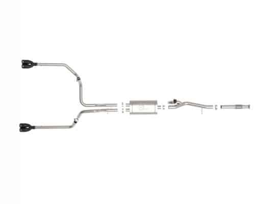 This system produced gains of up to +5 HP and +6 lbs. x Ft. TQ., as measured on our in-house dyno. This cat-back exhaust system is constructed of 3 IN – 2-1/2 IN mandrel-bent 304 stainless steel tubing for maximum strength and durability. This system features a high-flow stainless steel, producing an aggressive sound. Muffler finish may vary. Finishing off this exhaust system are dual 3-1/2 IN diameter black 304 stainless steel exhaust tips. The tips features a laser etched aFe POWER logo for a unique style. This system produces an aggressive sound unleashing all available horsepower and torque. Utilizing factory style hangers this system is a direct bolt-on system, which requires no cutting or modifications for a hassle-free installation. This cat-back exhaust system uses a heavy duty flex pipe with an internal interlock liner for added strength and durability. This kit includes key fob remotes, control module, valve motor, and all necessary wiring. It’s a simple installation, requiring no cutting of any wires or interference of the automobile’s electronics. This system features an electronically controlled exhaust cut-out valve to quickly switch between exhaust tones at the push of a button. Utilizing state-of-the-art computer-aided design technology, this exhaust system is designed for custom, high tolerance factory fitment. 100% MIG-Welded for race-proven strength and durability.