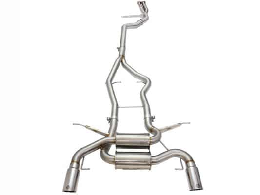 The Mach Force XP cat-back exhaust system produces 11 hp and 10 lbs./ft. of torque. constructed from 2.75 in. mandrel bent 304 hand brushed stainless steel and utilizes a unique crossover pipe that helps to equalize exhaust pressure and tunes the exhaust pulse. Comes with dual 3.5 in. polished 304 stainless steel tips and muffler to build a mellow yet powerful sound. Engineered and manufactured in our Corona Ca manufacturing facility. All systems use factory mounting locations providing stability and hassle-free installation. High quality band clamps are used for a complete 360 deg. sealing surface. A free flowing muffler is used to absorb high pitch tones producing a powerful sound and unleashing all available horsepower and torque. The crossover balance tube equalizes and evenly distributes exhaust pulses traveling through the exhaust system. This not only creates more efficient flow and better performance it also reduces sound decibels ultimately minimizing exhaust drone.