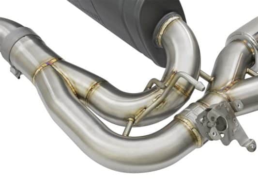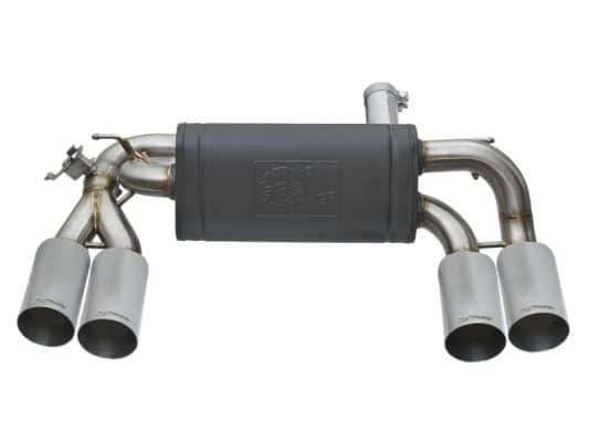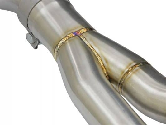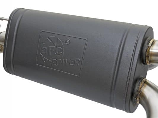 Aggressive Sound: A free-flowing, transverse muffler is used to absorb high pitch tones producing a powerful sound and unleashing all available horsepower and torque. The muffler is finished with a high-temp powder-coated black finish and a stamped aFe power logo. Exhaust Valve: This down-pipe back exhaust system incorporates a factory style exhaust valve which uses the factory exhaust valve motor (not included). The valve helps regulate, direct and control the flow of exhaust gases by opening, closing, or partially obstructing passageways depending on throttle position for maximum performance. Simple Installation: This MACH Force-Xp axle-back exhaust system uses factory mounting locations providing stability and a hassle-free installation. Quad 4″ Polished Tips Finishing off this system are quad 4″ diameter, polished, 304 stainless steel tips. The tips come with a laser-etched aFe power logo for an aggressive style. Leak-Free Seal: High quality band clamps are used for a complete 360 degree sealing surface. Brushed 304 SS Construction: The performance axle-back exhaust system is constructed of 3″ to 2-1/2″ mandrel-bent, brushed 304 stainless steel tubing for maximum performance, corrosion resistance and strength eliminating cracking. All aFe exhaust systems are engineered and manufactured in our Corona, California manufacturing facility.
