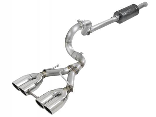 This Rebel Series cat-back exhaust system delivers quality, sound, performance and appearance for your Jeep JL 2 or 4 door model. Made from mandrel bent 409 stainless steel tubing for increased exhaust flow and performance, this dual rear exit system eliminates the primary muffler and uses a high flow, transverse rear muffler, finished in high temp black powder coating so it looks as good as it sounds. Dual 4-1/2″ stainless steel clamp-on tips with aFe POWER logos finish it off for the perfect combination of performance, value and style.