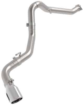 This DPF-back exhaust system is constructed of 3 IN mandrel-bent 304 stainless steel tubing for maximum strength and durability. Finishing off this exhaust system is a 4-1/2 IN diameter 304 stainless steel clamp-on exhaust tip. The tip features an aFe POWER logo plate riveted on for a unique style. Utilizing a factory style flange and hangers this system is a direct bolt-on system, which requires no cutting or modifications for a hassle-free installation. Utilizing state-of-the-art computer-aided design technology, this exhaust system is designed for custom, high tolerance factory fitment. MIG-Welded for race-proven strength and durability