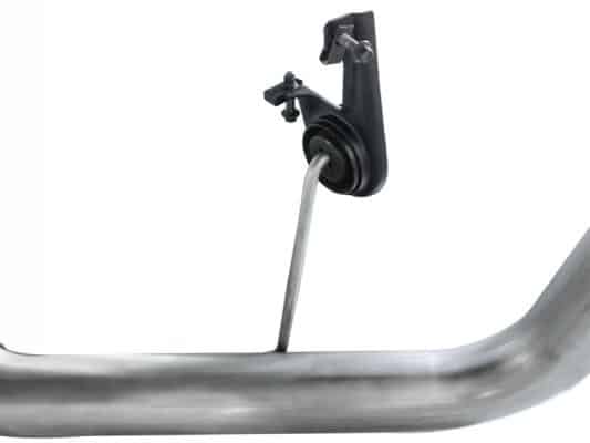 The new MACH Force XP exhaust is engineered to perform in the most extreme environments. This system is constructed from mandrel bent 4 in. 409 stainless steel tubing for maximum flow; increased horsepower; increased torque; and lower EGTs. MACH Force XP exhaust systems are the perfect combination of performance; fit; and value. All systems use factory mounting locations providing stability and hassle-free installation. High quality OE style band clamps are used for a complete 360 deg. sealing surface. A free-flowing 24 in. long muffler is used to absorb high pitch tones producing a powerful sound and unleashing all available horsepower and torque out of your rig. OE style bayonet hangers are used to maintain a stable pipe location during high vibration and high heat conditions. The bayonet tip holds the hanger bushing in place for an OE style fit that does not change with time.