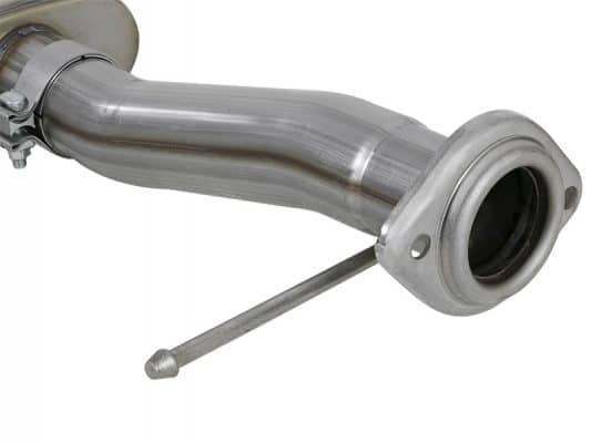 aFe POWER introduces an all new Rebel Series dual middle-side exit exhaust system for 2011-2014 Ford F150 EcoBoost with V6-3.5L (tt) engine. This Rebel Series cat-back is designed with dual polished exhaust tips that exit in front of the rear passenger tire for a unique, aggressive look. The tips come with a unique aFe Power logo laser etched on the side and constructed from stainless steel for durability. The exhaust system is constructed from 3″ into dual 2-1/2″ MIG-welded, mandrel bent stainless steel tubing for maximum flow, increased horsepower and torque. In testing, this cat-back exhaust system added an astounding +15 horsepower and +18 lbs. x ft. of torque as verified by our in house dyno. This kit uses an 18″ free-flowing muffler to absorb high pitch tones producing a powerful sound, virtually eliminating drone. The performance cat-back exhaust system includes all necessary hardware and clamps for a hassle-free install, with no cutting required making it a true bolt on system.