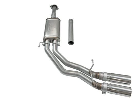 Introducing an all new Rebel Series Dual Center Exit Cat-Back exhaust system for the Jeep Wrangler (JK) with V6-3.6L/3.8L engine. This unique Rebel Series exhaust system is designed with dual center exit tips for an aggressive look. The Tips are 4-1/2″ with aFe power plates and constructed out of stainless steel for durability. This performance cat-back exhaust is constructed of 2-1/2″ MIG-welded mandrel-bent stainless steel tubing. The smooth curves and increased diameter of this exhaust system helps remove restriction and keeps exhaust gas flowing smoothly for increased horsepower, torque and throttle response. In testin g, this cat-back exhaust system added an astounding +9 horsepower and +14 lbs. x ft. of torque as verified by our in house dyno. This exhaust system comes complete with a 22″ free-flowing muffler, OE style bayonet hangers, band clamps and all hardware necessary for a hassle-free installation.