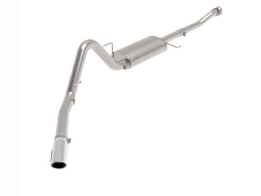 This cat-back exhaust system is constructed of 3 IN – 3-1/2 IN mandrel-bent 409 stainless steel tubing for maximum strength and durability. This system features a high-flow 409 stainless steel muffler, producing a aggressive sound. Finishing off this exhaust system is a 4-1/2 IN diameter polished 304 stainless steel clamp-on exhaust tip. The tip features an aFe POWER logo plate riveted on for a unique style. This system produces an aggressive sound unleashing all available horsepower and torque. Utilizing a factory style flange and hangers this system is a direct bolt-on system, which requires no cutting or modifications for a hassle-free installation. Utilizing state-of-the-art computer-aided design technology, this exhaust system is designed for custom, high tolerance factory fitment. 100% MIG-Welded for race-proven strength and durability.