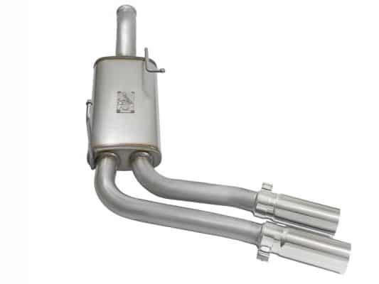 Introducing an all new Rebel Series Dual Center Exit Cat-Back exhaust system for the Jeep Wrangler (JK) with V6-3.6L/3.8L engine. This unique Rebel Series exhaust system is designed with dual center exit tips for an aggressive look. The Tips are 4-1/2″ with aFe power plates and constructed out of stainless steel for durability. This performance cat-back exhaust is constructed of 2-1/2″ MIG-welded mandrel-bent stainless steel tubing. The smooth curves and increased diameter of this exhaust system helps remove restriction and keeps exhaust gas flowing smoothly for increased horsepower, torque and throttle response. In testing, this cat-back exhaust system added an astounding +9 horsepower and +14 lbs. x ft. of torque as verified by our in house dyno. This exhaust system comes complete with a 22″ free-flowing muffler, OE style bayonet hangers, band clamps and all hardware necessary for a hassle-free installation.
