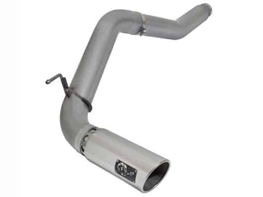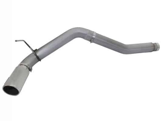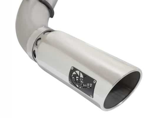 aFe LARGE BORE HD exhaust systems are constructed from mandrel-bent stainless steel tubing for maximum flow. Smooth transition bends allow for low turbulence, increasing horsepower and torque, while decreasing EGT. The 2-piece design and bayonet style hangers provide stability and for an easy installation. Finishing off the exhaust is a polished, stainless steel slash cut tip with intercooling vents designed to reduce exhaust gas temperatures at the tailpipe. A unique stainless steel laser-cut aFe Power logo plate is riveted on for an aggressive style.