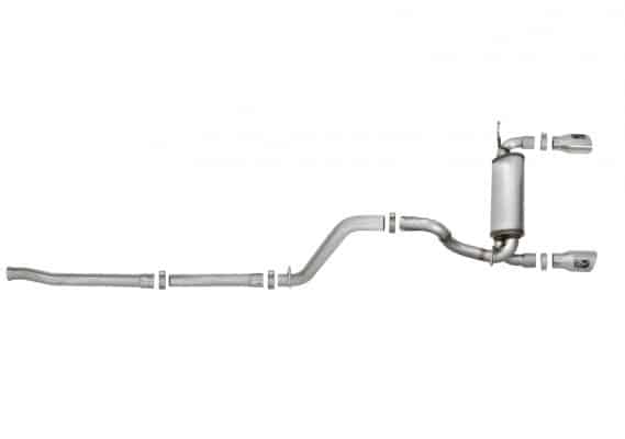 This Rebel Series cat-back exhaust system delivers quality, sound, performance and appearance for your Jeep JL 2 or 4 door model. Made from mandrel bent 409 stainless steel tubing for increased exhaust flow and performance, this dual rear exit system eliminates the primary muffler and uses a high flow, transverse rear muffler, finished in high temp black powder coating so it looks as good as it sounds. Dual 4-1/2″ stainless steel clamp-on tips with aFe POWER logos finish it off for the perfect combination of performance, value and style.