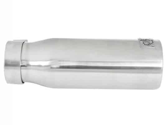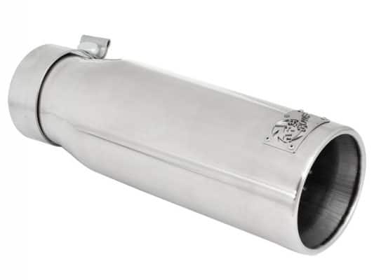 Nothing looks cooler than a huge tip completing your exhaust system. The aFe Power tip is constructed out of high luster, polished 304 stainless steel and has a slash cut and an aFe Power logo lazer etched into the top of the tip. A drain port on the bottom keeps rust and corrosion away.