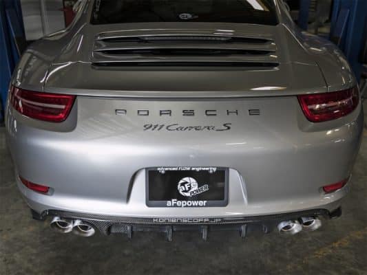 Give your Porsche (991) the luxurious style it deserves with the aFe POWER Mach Force-XP tip upgrades for the 2012 – 2016 Porsche 911 C2S with the H6-3.8L engine. Realizing that the OE exhaust tip could be improved, aFe designed a special quad 3-1/2″ 304 stainless steel exhaust tip assembly. Constructed of 3-1/2″ brush finished, 304 stainless steel tubing for improved performance and overall breath-taking appearance. High quality clamps and hardware are used, these tips are also manufactured to the OE style, resulting in a perfectly precise fit and a complete bolt-on installation. The tips are 100% hand TIG-welded by certified craftsmen fo r race proven strength and durability that your Porsche demands! No modifications are necessary and all hardware is included within the kit. 3-1/2″ dia. Brush Finish Stainless Steel Exhaust Tip: These tips are 3-1/2″ dia. brush finished stainless steel exhaust tips that gives your Porsche a clean, breath-taking appearance. Stainless Steel and Construction: This unique tip uses 3-1/2″ angle-cut brush finished, 304 stainless steel tubing that is TIG-welded by a certified craftsmen. Hassle-Free Installation: These tips are also manufactured to the OE style, resulting in a perfectly precise, hassle-fee installation fit with no modifications required.