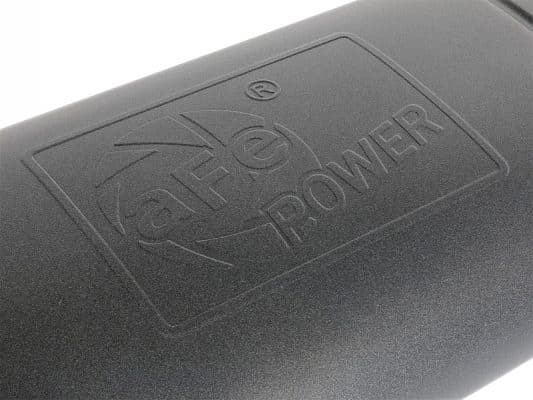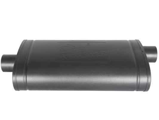 aFe’s Mach Force Xp muffler designed to provide a deep, throaty, powerful sound on acceleration yet maintains a smooth sound at idle. Constructed of 409 stainless steel, the Mach Force Xp muffler uses a straight through perforated core with heat resistant packing to reduce backpressure and maximize exhaust flow for performance and sound improvements over the factory exhaust. Stainless Steel Construction Constructed of 409 stainless steel for long lasting strength and durability. High-Temperature, Metallic Black Powder Coating Helps prevent corrosion, deepen the exhaust tone and give it a custom look . Design and Sound Designed for exhaust gasses to travel straight through the heat resistant perforated core for a remarkable tone. Universal Fit Universal muffler fits 3″ stainless steel tubing. Muffler does not come slotted. Muffler Specifications Configuration: 3″ Center Inlet / 3″ Offset Outlet. Size: 22″ body length x 11″ width x 5″ height oval body, unslotted. Stamped with an aFe POWER Logo Features an aFe POWER logo stamped onto the muffler for quality, brand authenticity.