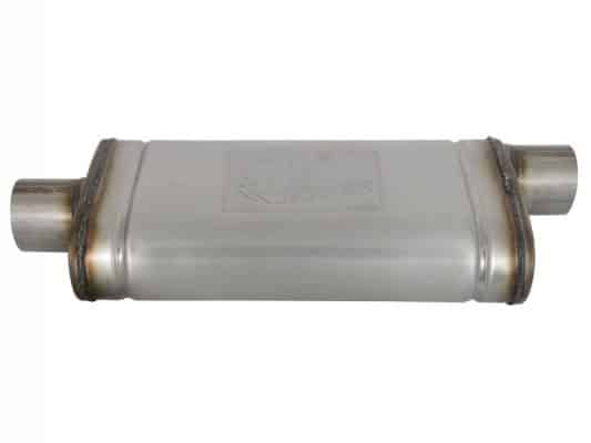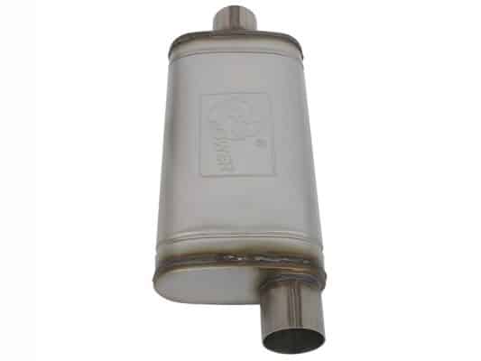 The aFe Universal fit 409 Stainless Steel Performance Muffler is designed to provide a deep, throaty, powerful sound on acceleration but maintain a smooth sound at idle. This muffler is constructed of brushed finished 409 stainless steel and uses a straight through perforated core with heat resistant packing to reduce backpressure and maximize exhaust flow. You will see increased performance and improved throttle response over the factory exhaust. Also featuring a stamped aFe Power logo for an aggressive style.