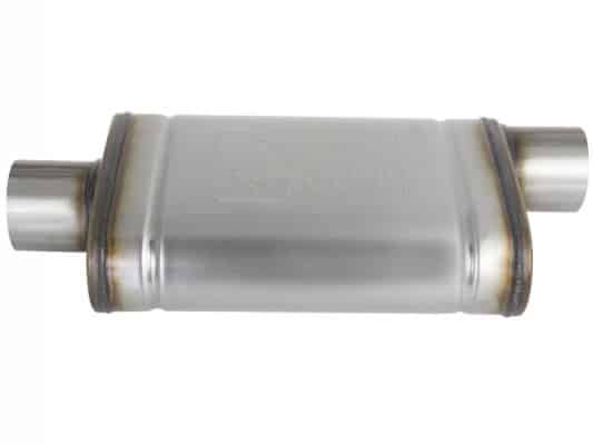 The aFe Universal fit 409 Stainless Steel Performance Muffler is designed to provide a deep, throaty, powerful sound on acceleration but maintain a smooth sound at idle. This muffler is constructed of brushed finished 409 stainless steel and uses a straight through perforated core with heat resistant packing to reduce backpressure and maximize exhaust flow. You will see increased performance and improved throttle response over the factory exhaust. Muffler Specs: 3″ In/Out- 4″ x 9″ Body