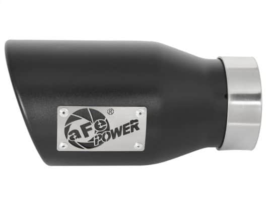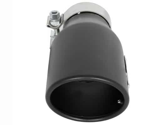 aFe Power is proud to introduce the all new exhaust tip. This tip comes with a matte black finish and is designed to fit 3″ exhaust systems. With a 3″ inlet x 4-1/2″ outlet and 9″ inch length, this single-walled, angle cut rolled tip comes with a unique laser-cut aFe Power logo plate riveted on for an aggressive style. Leak-Free Seal: A high quality stainless steel band clamp is used for a complete 360 degree sealing surface. aFe Badging: The exhaust tip comes with a unique laser-cut aFe Power logo plate riveted on for an aggressive style