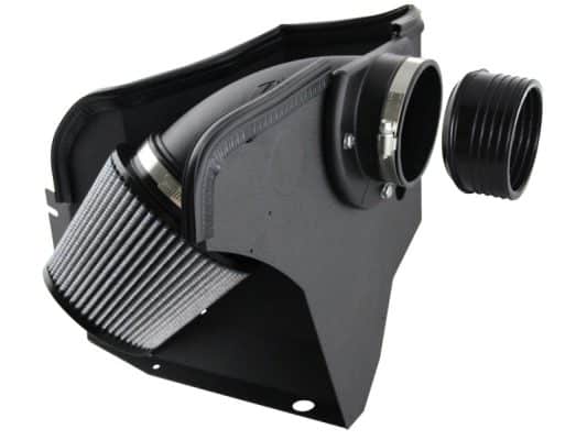 This air intake system produces up to 20 horsepower, 25 lbs. x ft. torque and out-flows the factory intake by up to 80%. Included in this system is a washable/reusable oil free conical air filter that uses three layers of progressive weave synthetic media for maximum convenience. The filter is constructed with 100% polyurethane for a long life and multiple cleaning cycles. This intake system also features a roto-molded tube that replaces the stock intake tract and directs increased air flow with improved volumetric efficiency for maximum performance. This intake system incorporates a unique coupling that smoothens the air transition into the intake tract, and also allows this kit to fit on both US and EURO Mass Air Flow Sensors. A one-piece black powder-coated heat shield requires little to no assembly for a hassle free installation.