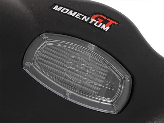 A custom CAD designed roto-molded housing made from heat soak resistant material eliminates the use of multiple components and ensures the coolest air intake charge available. A large clear sight window allows for filter inspection without removal of the air box. The roto-molded housing is made out of black cross-linked polyethylene. A urethane plug is also included if you wish to completely seal the auxiliary air inlet. (US PAT 9440175) For Filter-to-Housing Interface. This system uses a high quality plastic CAD designed, dyno-tuned, roto-molded intake tube to achieve maximum power gains while maintaining a perfect fit. Also included is a high quality billet aluminum crankcase fitting provided for easy installation. A high quality CAD air scoop guides cool ambient air to the performance air filter. This Momentum GT intake system was designed around the largest filter possible to allow maximum performance and filtration. This cylindrical filter has a large oval (6-3/4″ x 4-3/4″) flange and is 9″ tall inverted top Pro DRY S filter media. The Pro DRY S performance air filter features 3-layers of progressive finer porosity synthetic media providing maximum convenience with 100% polyurethane frame for long life and multiple cleaning cycles. Premium stainless steel clamps and a silicone coupling are used for strength and durability while also providing the most secure installation available. Momentum intakes are designed with fewer parts for a quick and simple installation.
