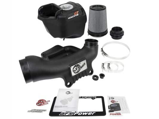 Bringing you the next generation of intakes, aFe is proud to introduce the Momentum GT Sealed intake system for the 2012-2018 Jeep Wrangler (JK) with the V6 3.6L engine. The Momentum GT sealed air intake system is designed using the most up-to-date engineering tools and techniques to provide you with the perfect blend of power and protection. This system is superior in every way. From the one-piece sealed housing, to the massive air filter, rotomolded tube w/ built-in resonance chamber and premium hardware. Unique One-Piece High Quality Housing w/ Sight Window: A custom computer designed roto-molded housing eliminates the use of multiple components and ensures the coolest air intake charge available. A clear sight window allows for filter inspection without removal of the airbox. The roto-molded housing is made out of black cross-linked polyethylene.(US PAT 9440175) For Filter-to-Housing Interface. Roto-molded Tube: This System uses a CAD designed, dyno-tuned, roto-molded intake tube to achieve maximum power gains while maintaining a perfect fit. This tube has a built-in resonance chamber to catch un-wanted air intake noises. Large 3-Layer Performance Air Filter: This Momentum GT intake system was designed around the largest filter possible to allow maximum performance and filtration. This cone inverted top filter has a massive round flange and is 8″ tall inverted top Pro DRY S media. The Pro DRY S performance air filter features 3-layers of progressive finer porosity synthetic media providing maximum convenience. The unique air filter to housing interface (patent pending) allows for maximum filter size which increases the available air volume while simplifying the installation process. Premium Hardware: Premium stainless steel T-bolt clamps are used to securely mount the high flow air filter to the 1-piece airbox. Momentum GT intakes are designed with fewer parts for a quick and simple installation.