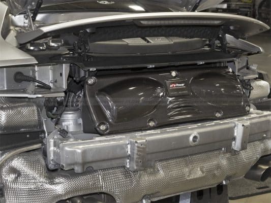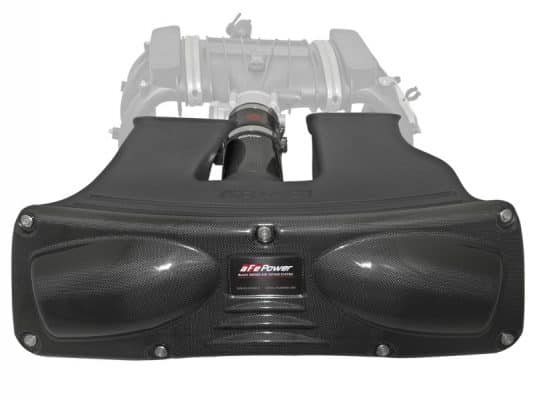 Unique computer Designed Housing: A custom CAD plastic housing encloses the dual performance air filters. This roto-molded housing is made out of black cross-linked polyethylene and mounts directly into the factory mounting location. It also connects to the factory air inlets to capture the coolest air available. Carbon Fiber Intake Tube: Lightweight high gloss clear-coated plain weave carbon fiber tube directs the filtered air from the dual air filters to the engine. It is computer designed and tested to increase air flow while reducing weight and enhancing the visual appearance of the engine bay. Carbon Fiber Cover: This unique carbon fiber cover is also lightweight high gloss clear-coated plain weave carbon fiber and closes off the housing from unwanted hot engine air. It features a serialized Black Series emblem for authenticity and is secured to the housing using aFe POWER laser etched washers and bolts. This cover will enhance your engine bay appearance. 8% Weight Reduction: This air intake system offers a 8% reduction versus the factory air intake system, thanks to the extensive use of carbon fiber material. 2 Sets Of Performance Air Filters: This Black Series intake system offers the option to use a pre-oiled or oil-free 360 degree radial flow performance air filters. Each kit comes with two pairs of large 7″ tall inverted top conical air filters (Total of 4): One set constructed in our 5-layer progressive oiled media (Pro 5R) for maximum airflow and performance, and the other made out of our 3-layer synthetic oil-free media (Pro DRY S) for maximum convenience. Premium Hardware: Premium stainless steel clamps, a reinforced silicone coupler and polyurethane sleeve housing inserts are used for strength and durability while also providing the most secure installation available.