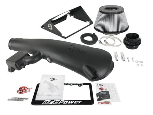 5.5″ Flange Massive Air Filter: This intake system utilizes a pre-oiled, 5-3/4″ tall inverted top conical 360 degree radial flow performance air filter with 5-layers of progressive finer mesh cotton media providing maximum airflow and performance. High Quality Tube: This system uses a high quality plastic CAD designed, dyno-tuned, roto-molded intake tube to achieve maximum power gains while maintaining a perfect fit. This tube has built-in resonance chamber to catch un-wanted air intake noise. One-Piece Heat Shield: Sturdy 18 Gauge Powder-Coated One-Piece Heat Shield blocks performance-robbing engine heat. This heat shield requires no assembly and uses factory mounting locations for fast and easy installation. Hassle-Free Installation: All clamps, coupling, and hardware are included for hassle-free installation. This is a direct bolt-on kit that requires no cutting or drilling on OEM parts.