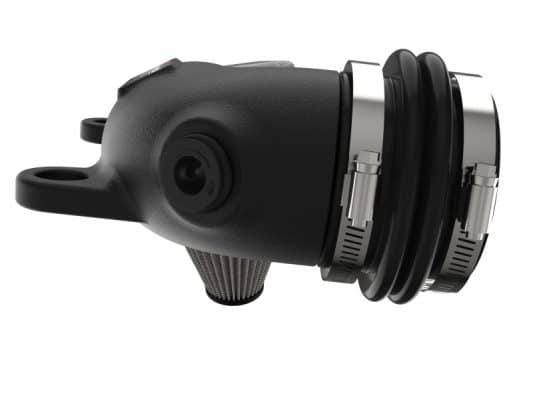 This filter features three layers of oil-free synthetic media and requires no oil during maintenance to provide maximum convenience. Its progressive layering provides great filtration efficiency and dust holding capacity. This media is best suited for street use. Pro DRY S filters are easily recharged with aFe’s POWER CLEANER. The unique IRF (Inverted Replacement Filter) design utilizes the depth of the OE airbox, providing maximum surface area, airflow, and performance, all within the stock filter housing. This system features a high quality, computer-designed, dyno-tuned intake tube to achieve maximum power gains while maintaining a perfect fit. Its XLPE material is heat soak resistant and extremely durable. Stainless-steel worm clamps and silicone couplings are used for strength and durability.