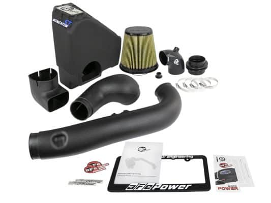 Unique One-Piece Sealed Housing: The smooth one-piece sealed housing with auxiliary air scoop is used to eliminate the use of multiple-piece housings and ensure the coldest air intake charge available. A urethane plug is also included if you wish to completely seal the auxiliary air scoop. High Quality Tube: This system uses a high quality plastic CAD designed, dyno-tuned, roto-molded intake tube to achieve maximum power gains while maintaining a perfect fit. Large 7-Layer Performance Air Filter: This Momentum ST intake system was designed around the largest filter possible to allow maximum performance and filtration. This cone filter has a massive round flange and is 8″ tall Pro GUARD7filter media. The Pro GUARD7performance air filter features 2-layers of Finer Porosity Synthetic non-woven media for highest filtration efficiency for extreme dust environments. Premium Hardware: Premium stainless steel clamps and a silicone coupler at the throttle body is used for strength and durability while also providing the most secure installation available. Momentum ST intakes are designed with fewer parts for a quick and simple installation.