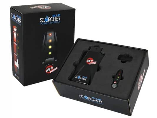 The aFe POWER SCORCHER BLUE Power module is the next generation of Plug and Play electronic module to increase the performance of your vehicle and improve drivability. It is the fastest way to gain safely significant amount of horsepower and torque without modifying or leaving any trace on the Engine Control Unit (ECU). A LED light switch provides in-cabin on-the-fly Power adjustments with different preset modes. Yet the SCORCHER BLUE power module also have the capability to connect via Bluetooth to your iOS or android device and provides power adjustment, gauges for the engine parameters, custom tuning of the different power modes, upgradability to the latest tunes, measure acceleration time and more. The app is downloadable for free on the app store or play store.