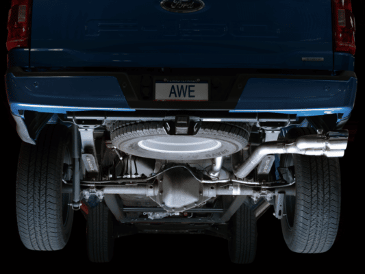 AWE 0FG 21+ Ford F150 Dual Side Exit Cat-Back Exhaust- 4.5in Chrome Silver Tips