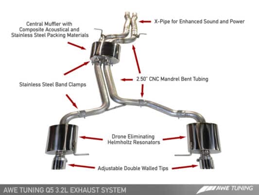AWE Tuning Audi 8R Q5 3.2L Non-Resonated Exhaust System (Downpipe-Back) – Polished Silver Tips
