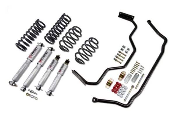 Lower your domestic Musclecar right the first time. Belltech Street Performance complete lowering kits include all the parts, pieces and shock absorbers you need to achieve not only the look you WANT, but the ride quality, performance & safety you NEED. These complete lowering kits are your all in one box solution. Made up of a combination of front and rear coil springs, front and rear Street Performance shock absorberss as well as both front and rear performance saybars. All the necessary ingredients to achieve that proper stance! Choosing your kit has never been simpler.