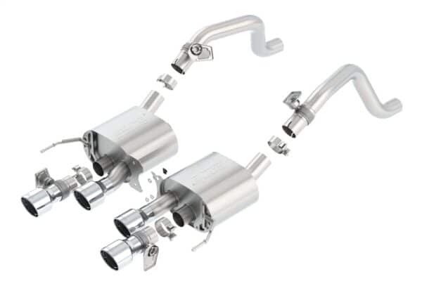 This Axle-Back system includes both AFM and NPP valves. Optional systems are available as well as systems without NPP and systems without AFM or NPP. This system is for vehicles that come from the factory with single tips and are NOT equipped with NPP (dual mode exhaust). Borla Cat-Back And Axle-Back multi-core technology to unleash hidden horsepower. Increased exhaust velocity adds power, driving excitement, fuel economy, and the distinctive Borla Sound of Power respected by motoring enthusiasts everywhere. Each system is built from premium T-304 stainless steel, superior to T-400 series knockoffs (such as 409), to give you the absolute best in performance and durability. Ultra-smooth mandrel bends ensure maximum flow & power, and precision computer-controlled CNC manufacturing ensures an accurate fit. Best of all, Borla stands behind every system with a Million-Mile Warranty. Just what you?d expect from the world?s most experienced (and most winning) exhaust brand. Features a durable high-temperature Ceramic Black finish on the tips. Borla’s C7 Corvette Axle-Back exhaust systems are covered under our Million-Mile Warranty for non-moving parts, the exhaust valves are warrantied for 3 years. Failures of original equipment AFM and NPP actuators are not covered by the Borla warranty.