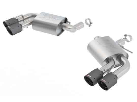This system has dual tips and will fit the vehicles equipped with Dual Mode Exhaust (NPP) but it does NOT include Dual Mode valves. This system is for vehicles that come from the factory with single tips and are NOT equipped with NPP (dual mode exhaust). Borla Cat-Back And Axle-Back multi-core technology to unleash hidden horsepower. Increased exhaust velocity adds power, driving excitement, fuel economy, and the distinctive Borla Sound of Power respected by motoring enthusiasts everywhere. Each system is built from premium T-304 stainless steel, superior to T-400 series knockoffs (such as 409), to give you the absolute best in performance and durability. Ultra-smooth mandrel bends ensure maximum flow & power, and precision computer-controlled CNC manufacturing ensures an accurate fit. Best of all, Borla stands behind every system with a Million-Mile Warranty. Just what you?d expect from the world?s most experienced (and most winning) exhaust brand. Features a durable high-temperature Ceramic Black finish on the tips.