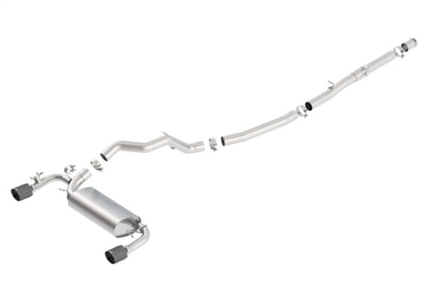This system is equipped with a “Sound Suppressing Valve” simulator. This avoids any warning lights on the dash while providing maximum flow at all times. Equipped with carbon fiber tips with black anodized centers. Borla Cat-Back And Axle-Back multi-core technology to unleash hidden horsepower. Increased exhaust velocity adds power, driving excitement, fuel economy, and the distinctive Borla Sound of Power respected by motoring enthusiasts everywhere.