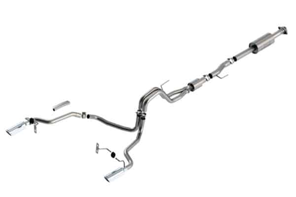 The Borla(r) Cat-Back(tm) system 140866 was specifically designed to enhance the power and sound of the Ford F-150 equipped with the 5.0L V8 engine. It includes bright chromed T-304 stainless steel tips and a split rear exit configuration. The entire system is made of T-304 stainless steel and utilizes computer numerical control (CNC) manufacturing techniques that ensure an accurate fit. This system features the “S-Type” sound that gives you an aggressive sound with no drone. It is also available with black chromed tips (part number 140866BC). There are additional systems available for the 5.0L F-150 that offer different options for sound level, tip finish and tip exits. All this is backed by our unsurpassed Million Mile Warranty., System Features:, Cat-Back(tm) System, Split Rear Exit, Bright Chrome On T-304 Stainless Steel Tips, S-Type Sound Level, T-304 Stainless Steel Construction, Bolt-On Installation, Million Mile Warranty