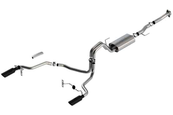 The Borla(r) Cat-Back(tm) system 140868BC was specifically designed to enhance the power and sound of the Ford F-150 equipped with the 5.0L V8 engine. It includes black chromed T-304 stainless steel tips and a split rear exit configuration. The entire system is made of T-304 stainless steel and utilizes computer numerical control (CNC) manufacturing techniques that ensure an accurate fit. This system features the “S-Type” sound that gives you a mild sound of power with no drone. It is also available with bright chromed tips (part number 140868). There are additional systems available for the 5.0L F-150 that offer different options for sound level, tip finish and tip exits. All this is backed by our unsurpassed Million Mile Warranty., System Features:, Cat-Back(tm) System, Split Rear Exit, Black Chrome On T-304 Stainless Steel Tips, S-Type Sound Level, T-304 Stainless Steel Construction, Bolt-On Installation, Million Mile Warranty