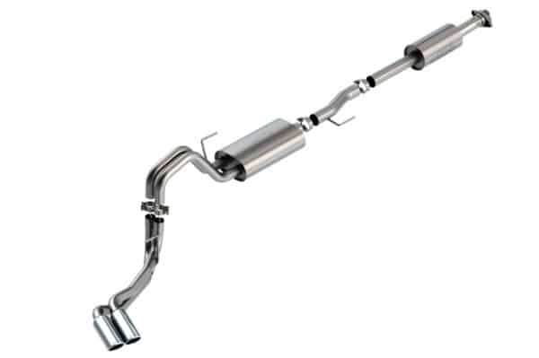 The Borla(r) Cat-Back(tm) system 140873 was specifically designed to enhance the power and sound of the Ford F-150 equipped with the 5.0L V8 engine. It includes bright chromed T-304 stainless steel tips and a dual side exit configuration. The entire system is made of T-304 stainless steel and utilizes computer numerical control (CNC) manufacturing techniques that ensure an accurate fit. This system features the “Touring” sound that gives you a mild sound of power with no drone. It is also available with black chromed tips (part number 140873BC). There are additional systems available for the 5.0L F-150 that offer different options for sound level, tip finish and tip exits. All this is backed by our unsurpassed Million Mile Warranty., System Features:, Cat-Back(tm) System, Dual Side Exit, Bright Chrome On T-304 Stainless Steel Tips, Touring Sound Level, T-304 Stainless Steel Construction, Bolt-On Installation, Million Mile Warranty