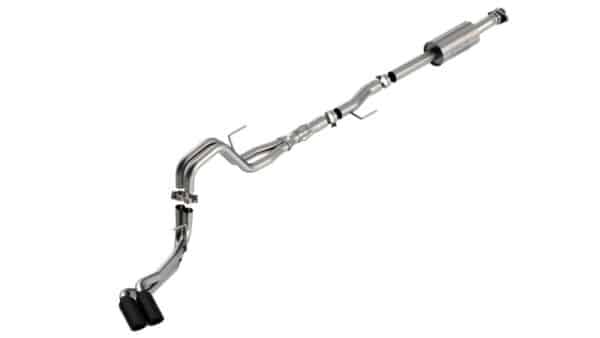 The Borla(r) Cat-Back(tm) system 140875BC was specifically designed to enhance the power and sound of the Ford F-150 equipped with the 5.0L V8 engine. It includes black chromed T-304 stainless steel tips and a dual side exit configuration. The entire system is made of T-304 stainless steel and utilizes computer numerical control (CNC) manufacturing techniques that ensure an accurate fit. This system features BORLA(r)’S Polyphonic Harmonizer Technology utilizes patented units which contain pipes of different diameters and lengths to create multiple exhaust notes that harmonize to deliver a clean, rich, full-bodied sound. This system is tuned for the “ATAK(r)” sound that gives you an aggressive sound with no drone. It is also available with bright chromes tips (part number 140875). There are additional systems available for the 5.0L F-150 that offer different options for sound level, tip finish and tip exits. All this is backed by our unsurpassed Million Mile Warranty., System Features:, Cat-Back(tm) System, Dual Side Exit, Black Chrome On T-304 Stainless Steel Tips, ATAK(r) Sound Level, T-304 Stainless Steel Construction, Bolt-On Installation, Million Mile Warranty