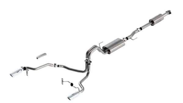 The Borla(r) Cat-Back(tm) system 140879 was specifically designed to enhance the power and sound of the Ford F-150 equipped with 3.3L engine. It includes bright chromed T-304 stainless steel tips and a split rear exit configuration. The entire system is made of T-304 stainless steel and utilizes computer numerical control (CNC) manufacturing techniques that ensure an accurate fit. This system features the “ATAK(r)” sound level that gives you our most aggressive sound level with no drone. It is also available with black chromed tips (part number 140879BC). There are also systems available for the 3.3L F-150 that offer different options for sound level, tip finish and tip exits. All this is backed by our unsurpassed Million Mile Warranty., System Features:, Cat-Back(tm) System, Split Rear Exit, Bright Chrome On T-304 Stainless Steel Tips, ATAK(r) Sound Level, T-304 Stainless Steel Construction, Bolt-On Installation, Million Mile Warranty
