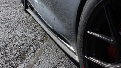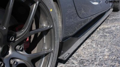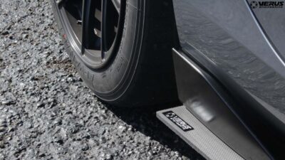 The Verus Engineering Carbon Polyweave Side Splitter Kit completes the aerodynamic appearance of your Mk5 Toyota Supra. These units were designed specifically to flow with the factory side-splitter and feature a horizontal member which reduces the amount of high-pressure air making its way to the bottom side of the vehicle. This high-pressure air produces lift and by reducing this, we reduce lift on the chassis. This is specifically prevalent while the vehicle is in yaw or while turning.