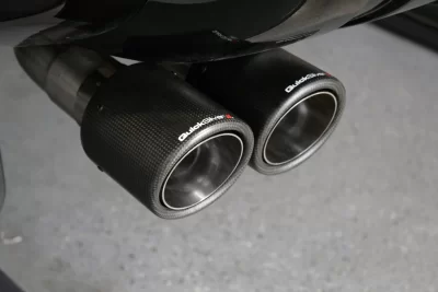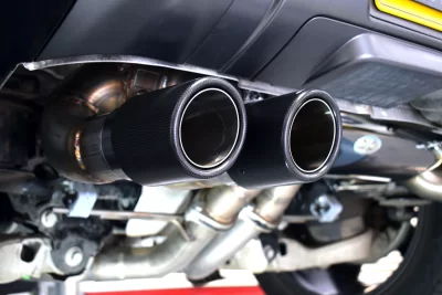 • Stainless Steel mandrel bent tubing. • Improved throttle response. • Fantastic burbles and pops on the overrun. • Civilised to sports car in an instant. • The 4 x straight carbon fibre tail pipes and mirrored traverse box are a huge improvement to the rear view. |