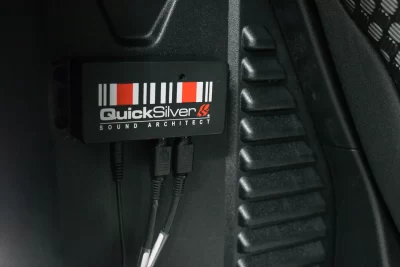 | The QuickSilver Sport System with Sound Architect Valves gives your Defender P400 the sound you expected from the factory. Loud or Quiet – our system uses our revolutionary Sound Architect™ Module, which is controlled by your mobile phone via the QuickSilver App. It could not be easier. With the valves shut the QuickSilver system provides a civilised note which is unobtrusive and perfect for long journeys and early starts. Switch to valves open and the monstrous side comes alive with volume and pitch increased to deliver a pure inline six car sound that enriches the experience. The QuickSilver system is truly plug & play, it requires no intrusion into the cars’s OE systems and is completely reversible if ever required. |