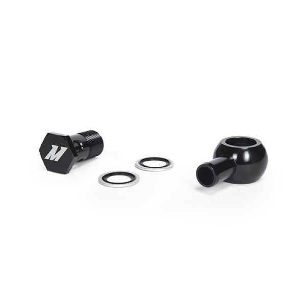 Made from 6061 aluminum, the black anodized Mishimoto Banjo Fitting with Bolt has M20 x 1.5 & 5/8″ straight connections, two dowty oil seals, and the Mishimoto Lifetime Warranty.