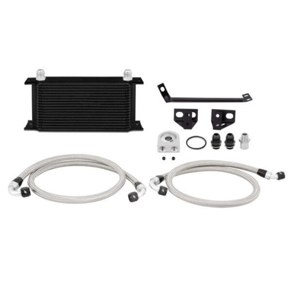 For the first time in over 30 years, the iconic Ford Mustang is available with a turbocharged 4 cylinder engine producing over 300 horsepower! Turbocharged 4 cylinder engines can overheat their oil very quickly within a few laps on the track or aggressive street driving. Did you know that unlike the 5.0 liter V8, the 2.3 liter EcoBoost Mustang does not come with a factory oil cooler? Aggressive tunes and some track miles can significantly overheat your oil wear down your engine. Leave it to Mishimoto to come up with an oil cooling solution to your Mustang EcoBoost! The Mishimoto engineers started with a large 19-row oil cooler and mounted it in the front of the vehicle where it receives the most airflow. Application specific braided stainless steel lines transfer the oil from the cooler to the engine and feature -10AN fittings for an easy installation. Mishimoto engineers saw consistent temperature decreases of over 40 degrees Fahrenheit using our non-thermostatic sandwich plate. Proving that this oil cooler kit can withstand the stresses of the most extreme applications. This 2015 Mustang EcoBoost oil cooler kit is available with either a Sleek Silver or Stealth Black cooler and your choice of the MIshimoto Oil Sandwich Plate or the MIshimoto Thermostatic Oil Sandwich Plate. As with all our products, this Mishimoto Mustang EcoBoost Oil Cooler Kit includes the Mishimoto Lifetime Warranty.