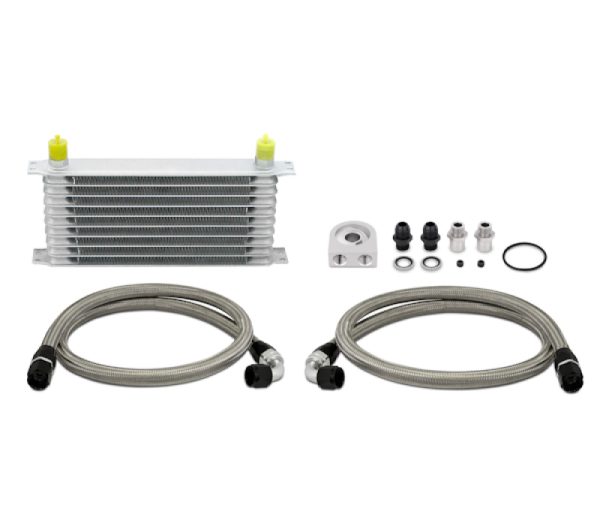 An oil cooler kit is a must for any car with a high performance engine.Even with optimal driving conditions, increased oil temperatures will cause a drop in pressure and will decrease the ability for your engine to be properly lubricated.This could potentially cause engine seizure.Keep your oil cool with the Mishimoto universal oil cooler kit.This oil cooler kit includes all needed adapters for any vehicle application.