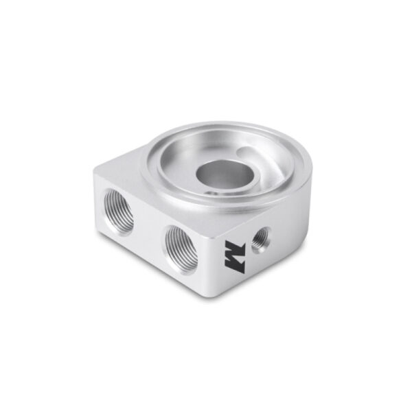 This Mishimoto Oil Sandwich Plate is a lightweight, high-flow sandwich plate that’s used to regulate oil flow to the cooler until the engine is properly warmed up and allows for oil system protection in cold climates.