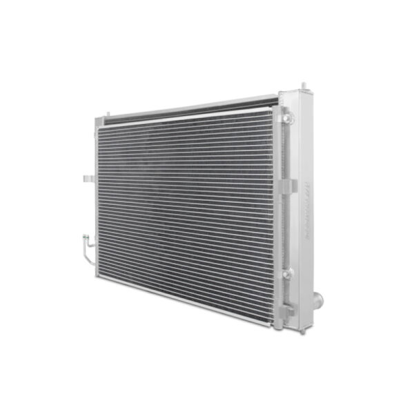 The Mishimoto performance aluminum radiator for the Nissan 370Z is an ideal upgrade to the OEM radiator.Are you sick of watching the temperature gauge creep upwards during your track days and in stop and go traffic? The Mishimoto aluminum radiator has been proven to reduce temperatures by 20 degrees and offers increased capacity over the stock unit.The Mishimoto radiator is crafted from high quality aircraft aluminum and is precision TIG welded for durability and longevity.This Mishimoto 370Z radiator also includes a built in AC condenser which simplifies the installation process and alleviates potential headaches.As with all of our products this radiator is protected by the Mishimoto lifetime warranty.