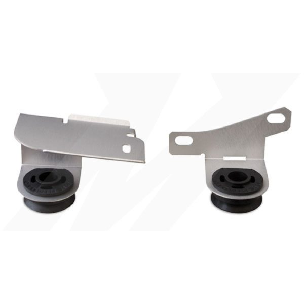 Mishimoto has developed Ford Mustang aluminum radiator stays to replace the OEM upper radiator brackets.These are a must have for any Mustang owner looking to install an aftermarket radiator.The stock OEM Ford brackets have a rigid design that does not allow them to bend and move in harmony with the Mustang’s uni-body when it is being torqued under hard driving conditions.These forces combined with the Mustang’s rigid upper radiator brackets cause performance aluminum radiators to crack and leak.The Mishimoto Ford Mustang radiator stays are made out of thin gauge aluminum and use a softer rubber bushing, allowing the bracket to bend and move with the radiator, thus preventing damage.Designed to fit both OEM and aftermarket radiators.Made in USA