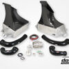 The core is new, but the end tanks and all accessories are the same as before. The intercoolers feature cast end tanks that distribute the airflow over the full core in a very precise way. This is very important as a good tank design will be beneficial for both pressure drop and cooling efficiency. To be able to fit an intercooler with appropriate thickness for the job, it was also necessary to design a new upper ambient air guide. This was designed in our 3D-scanned environment to ensure perfect fitment to the vehicle-integrated air guides, as well as the intercooler. To further remove bottlenecks, the intercooler kit MERA has intercooler connections that are 70 mm (2 3/4 inch) to really allow for the air to pass without restriction. This also means that there are new hoses included for each position, of which all are 3D-designed with maximum airflow in mind. All hoses are CFD-tested to ensure this. The hoses on the turbo outlet are made from a high-temp spec. material, rated to 240°C (464°F) continuous temperature. In order to really take advantage of all the heat-transferring ambient air, the carbon ducts come with proper seals towards the body, forcing all of the air to pass through the core, and not escape around it.