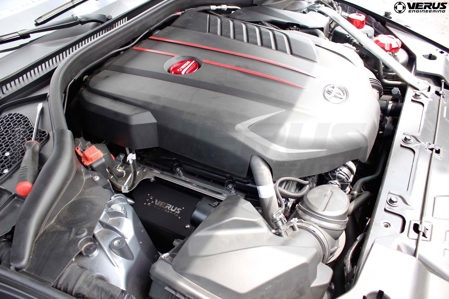 The Verus Engineering 6 Port Turbo Heat Shield for the 2021 Supra is perfect for keeping heat around the turbo area and freeing up engine bay space. If running an aftermarket intake; it is a great addition to reduce heat soak as well. Removing the factory resonator and heat shield greatly improves engine bay aesthetics and available room.